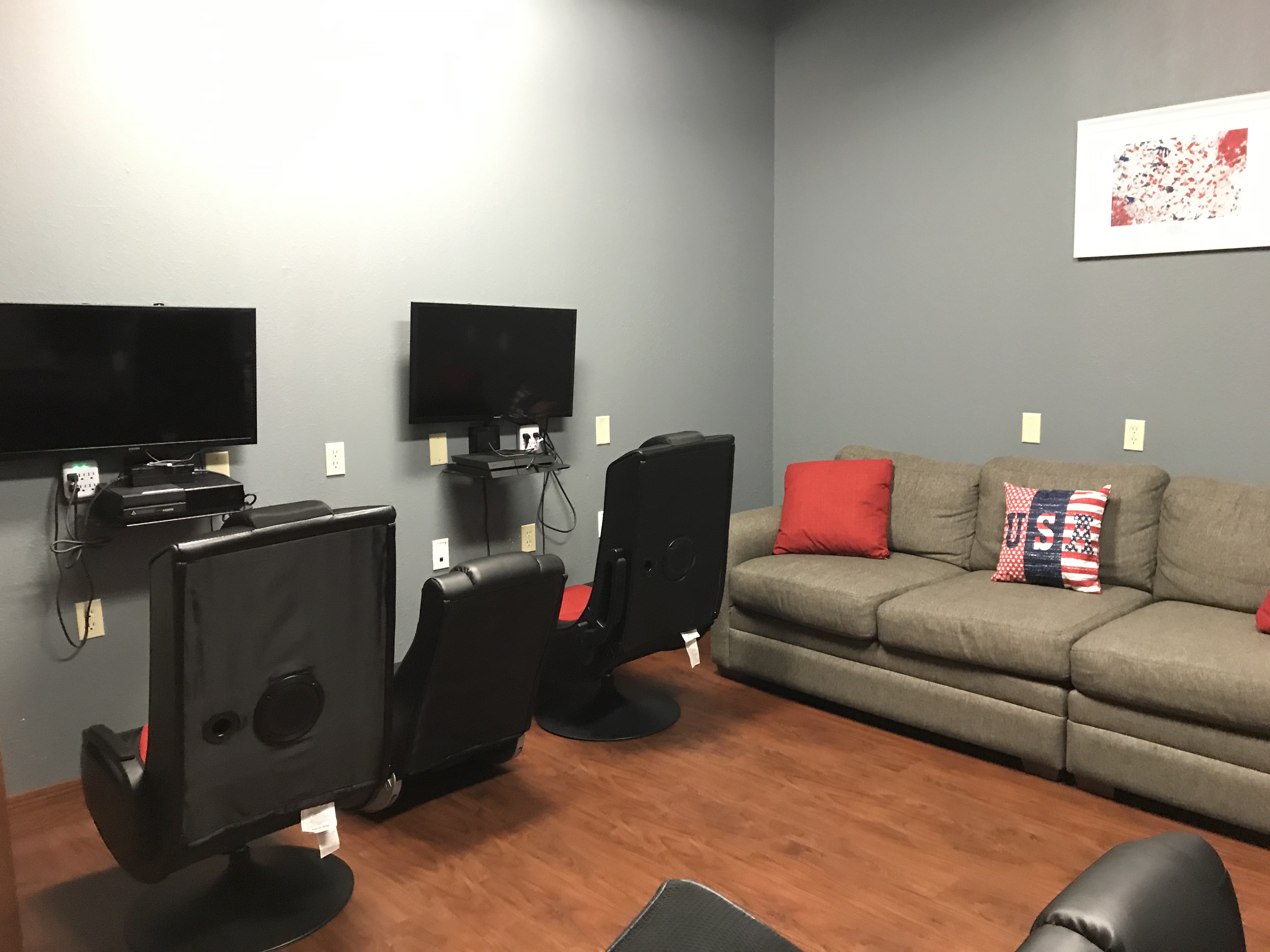 At 8 a.m., the USO opened. It’s an amazing USO… free snacks and drinks, two game rooms, a theater room, pool table, fireplace and lounge area, a quiet room and even a guitar to play, which a departing airman headed to Turkey, used to treat us all to an impromptu concert.