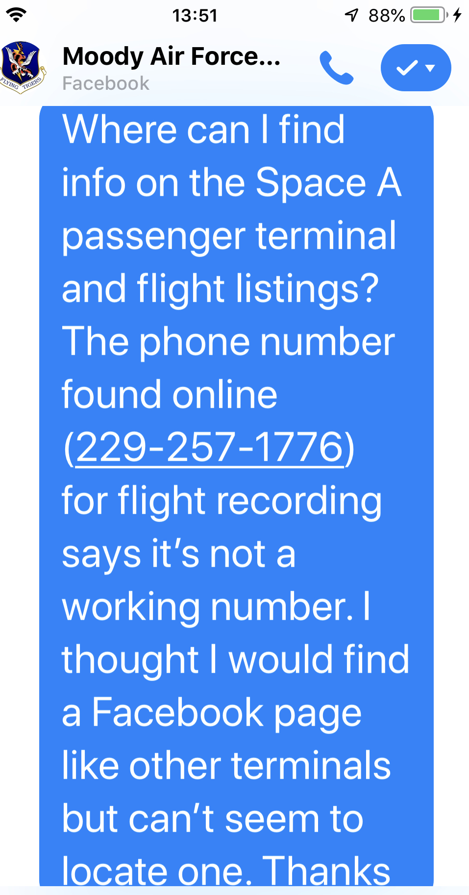 He doesn’t know and tells me that he’d have to ask Moody how many passengers they have there wanting a seat too. He won’t be able to tell us until a few hours before roll call. I walk away to go research flights out of Moody to which I find none… no Facebook page for their passenger terminal and the number I find online for them isn’t in service.