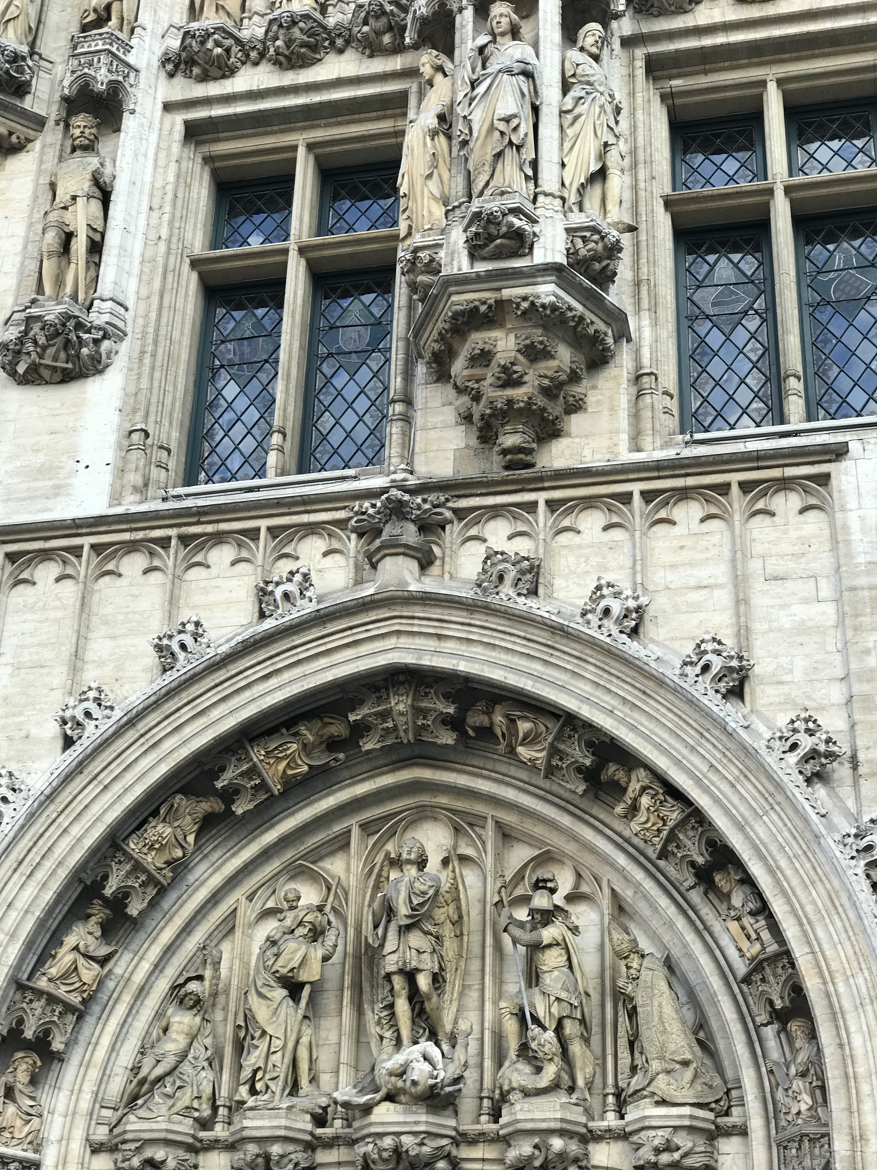 But when we got closer to the Grand Place, the view was amazing! The immense size of the medieval marketplace was astounding and the architecture of the historical square was absolutely breathtaking, surrounded by guilded buildings and their stunning statues. I was in awe at the sight, and excitedly tried to get Steven to feel the same excitement at the craftsmanship of the 14th century square but all he wanted was a coffee. Various restaurants surround the square, housed in the lower portions of the ancient buildings. We spotted a Starbucks, ordered drinks and sat outside, with me continually getting up to take more and more pictures. The majority of the buildings had been damaged thru different conflicts so the buildings standing are mostly reconstructions from the 18th century but still just as important as the originals. I learned that it’s been designated as a World Heritage Site and is considered the most beautiful square in Europe.
