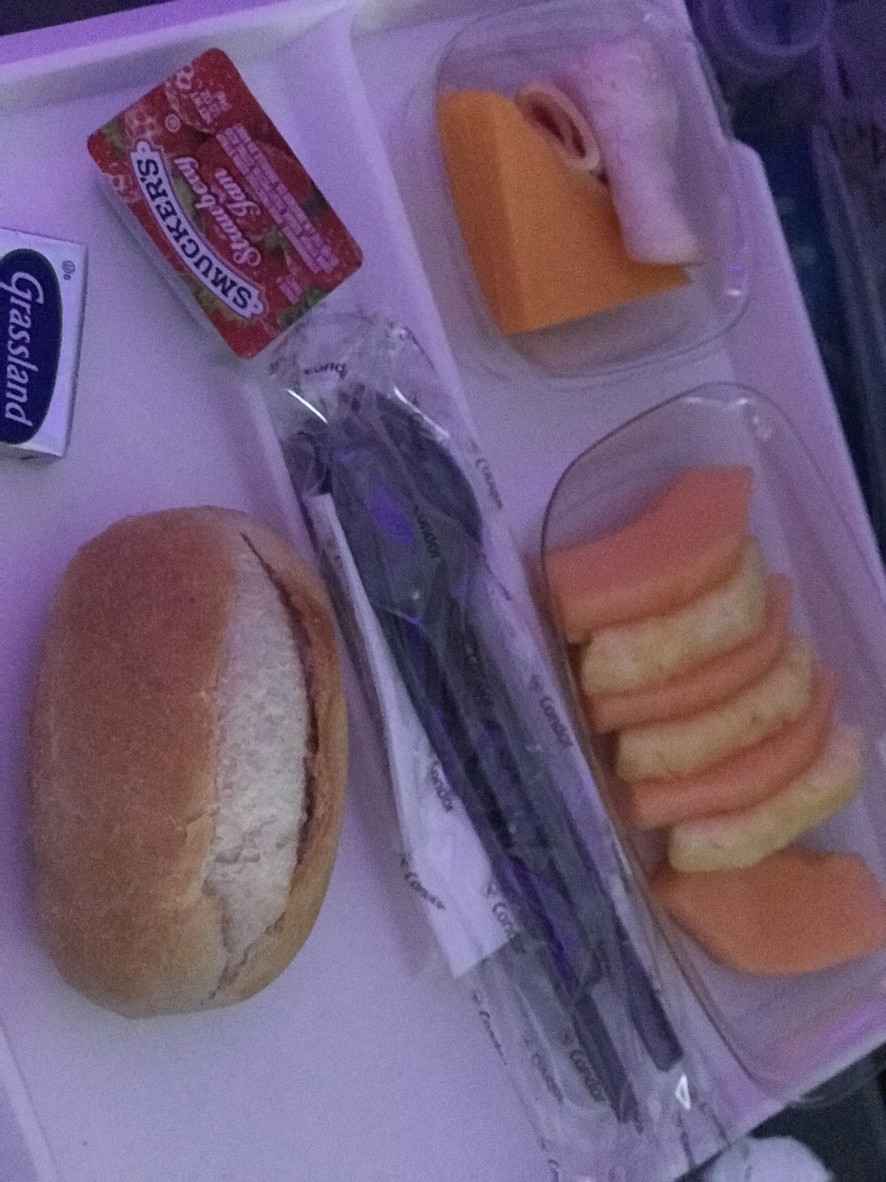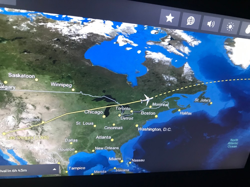 A pillow and blanket were resting in my seat at my arrival. The attendants were very welcoming and kind. The first meal service, yes, I said first, was a hot meal of penne, basil, and tomato sauce, a warm roll, a very tasty coleslaw salad and a chocolate mousse that was to die for! We had our choice of non-alcoholic drinks with the meal and there was no extra surcharge. Every seat had an entertainment system with TV shows, movies and music available for free using your own headphones or you could purchase more movie choices for a nominal fee or a pair of headphones if you didn’t have your own. The second meal service was breakfast before landing. We were served a rolled up slice of turkey and two thick pieces of cheese, another warm, tasty and extremely fresh roll and jam, and slices of cantaloupe and pineapple. Absolutely delicious!