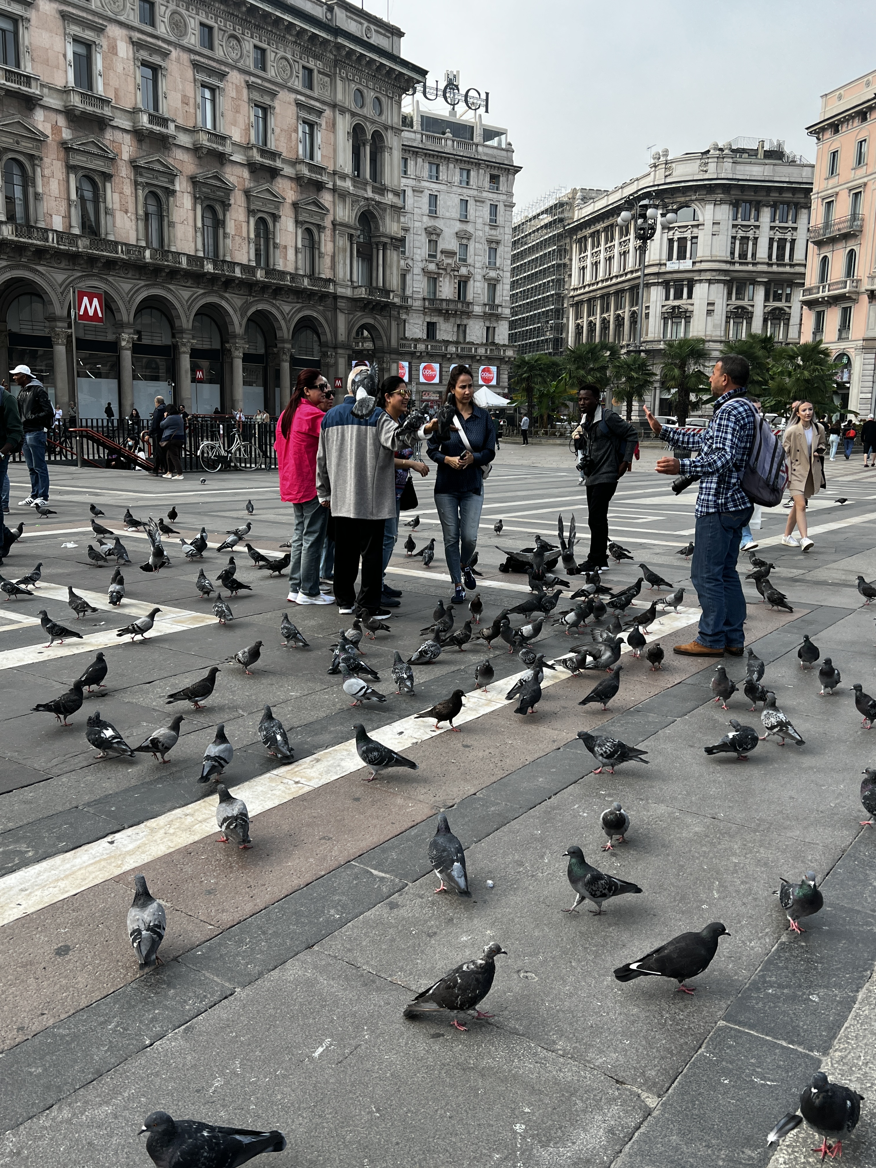 Today we were heading to Rome, but before we left I wanted to see the Duomo so after we checked out we made our way to Duomo Square. It was magnificent to see! Absolutely beautiful and the Square was so full of people. I don’t think I’ve ever seen so many pigeons and the square hawkers were placing food on the arms of tourists to draw the birds to them for pictures. It looked cool, but I wasn’t about to play that game though!
