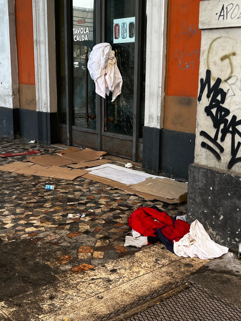 The homeless lie on the sidewalks with their homemade tents of blankets, and the smell of urine is strong when walking by them. Beggars with their cups out, asking for coins. Graffiti decorates the sides of buildings, young and old and trash is built up alongside the roads and on sidewalks, cans and cigarette boxes line windows and doorways. It’s a sobering reality to see even a city rich in history and tourists, has problems it’s struggling to deal with.