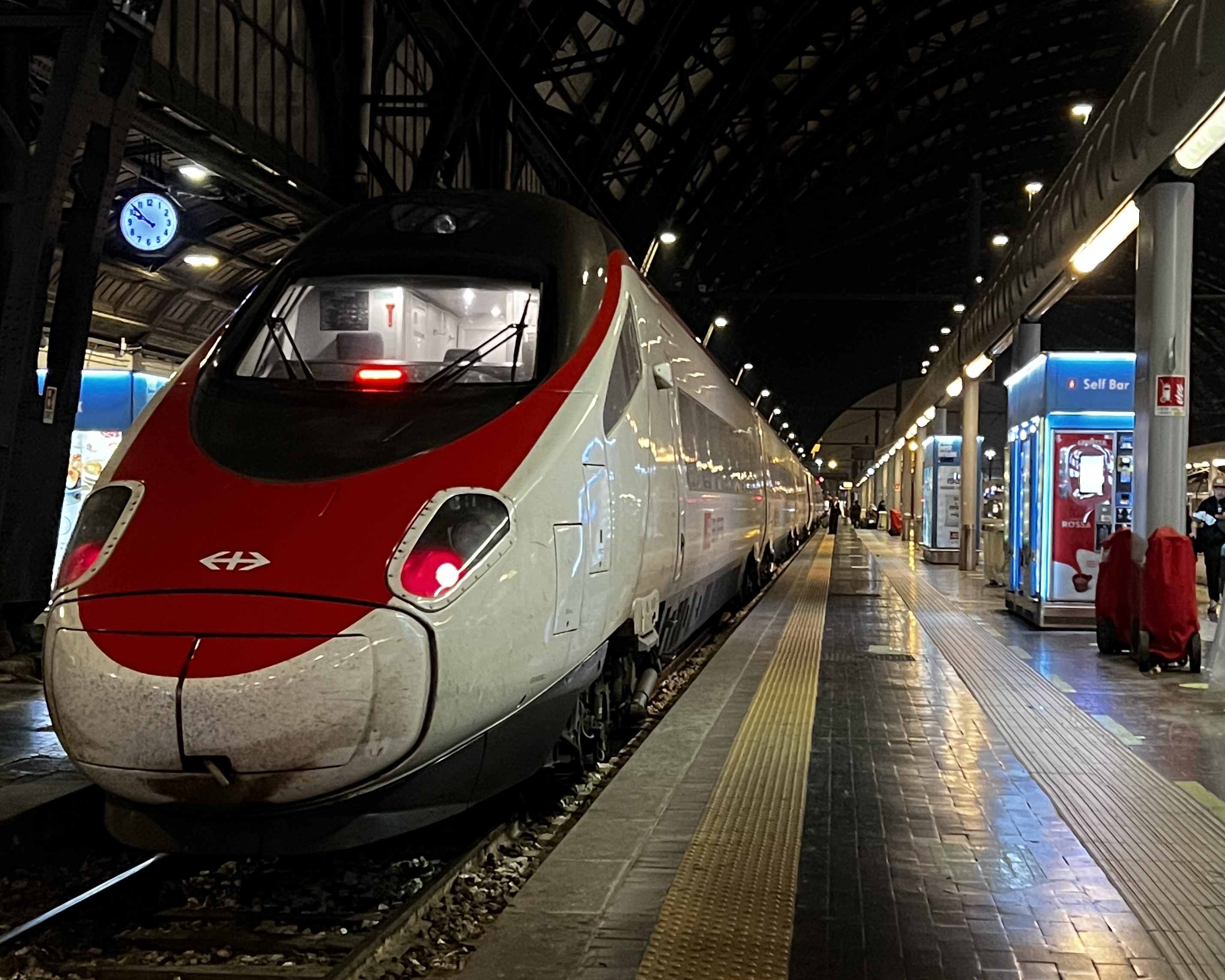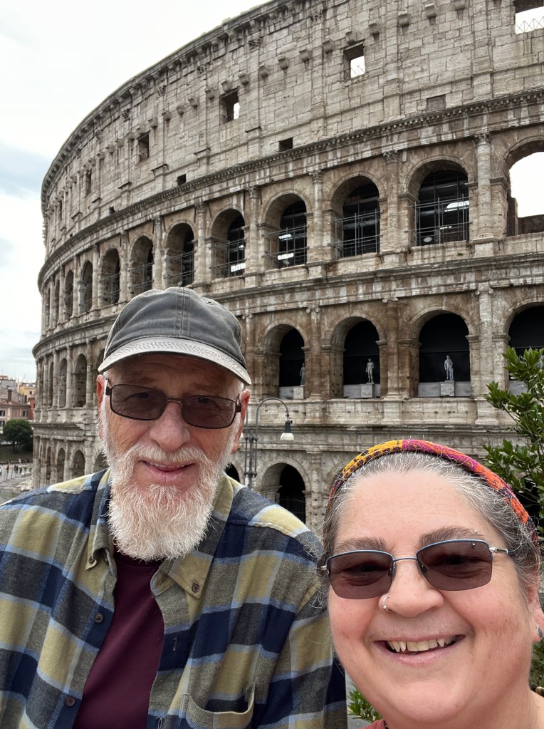 At the train station in Milan, we had to get seat reservations to travel to Rome. I had already purchased a seven-day Europass to travel wherever we wanted… a choice of 33 countries. We have a month to travel to use those days up… you could go through three countries in one day if you wanted, just like we were doing this day, but seat reservations which guarantee you a seat were extra. We got our seat reservations from the ticket office and headed to the platform to wait for the train to Rome. It was while waiting that we discovered the ticket clerk had put us in different cars… we would be taking the three-hour journey apart and sitting with strangers. I told Steven he’d better enjoy it because it was the only bit of peace he would get for the next few weeks. After the train left the station, he texted me and told me he was sitting next to a priest. Good, I told him. You need Jesus!