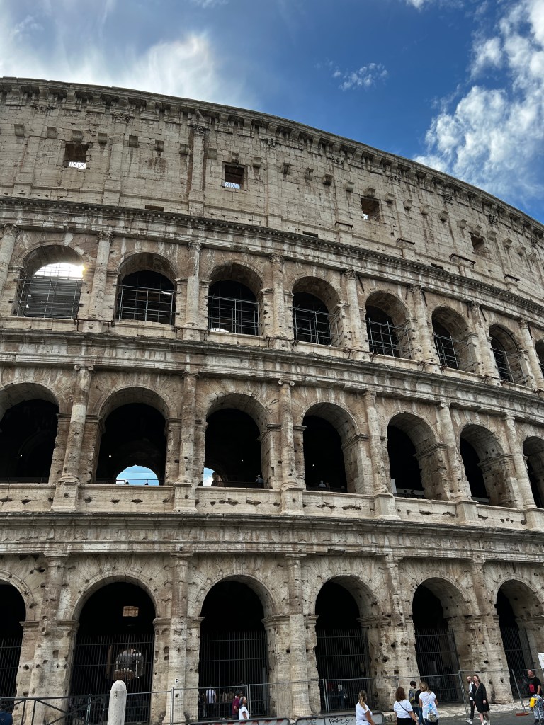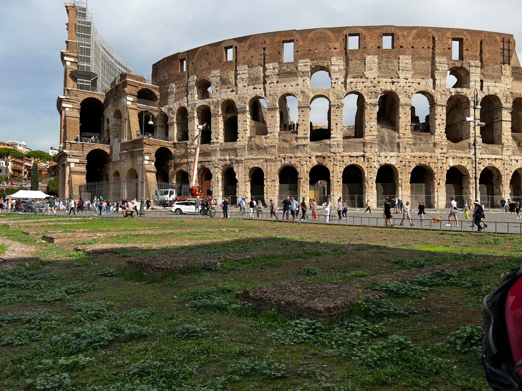 We didn’t go inside the Colosseum, as the lines were quite large, and my husband’s tolerance of sightseeing that in-depth is non-existent. I’ve been before so I didn’t mind just walking around it. I actually saw more than I had the first time I went twenty-plus-odd years ago. We walked up one hilly street to a church because we thought it was a way around and it turned out to be a dead end. For those who know my husband, your imagination would be right. LOL