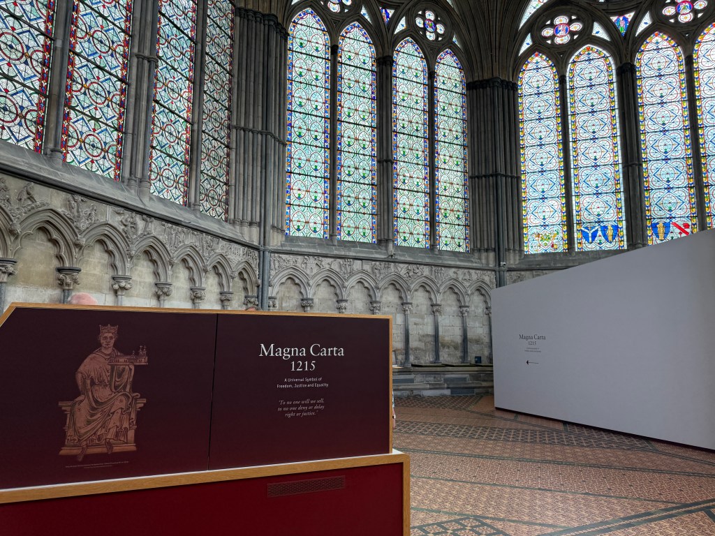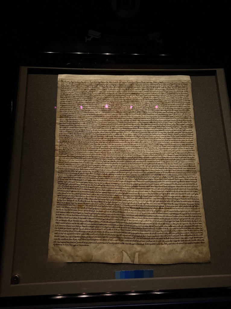 The church is also the home of one of the last four remaining original copies of the Magna Carta! The Chapter House, the Cathedral’s administration room for centuries, houses the Magna Carta. Its medieval carved stone frieze depicts scenes from the first two books of the Bible and taught me a thing or two… I had no idea that Noah had gotten drunk! To be able to see the amazing document that established the foundation for the rule of law in person was humbling.