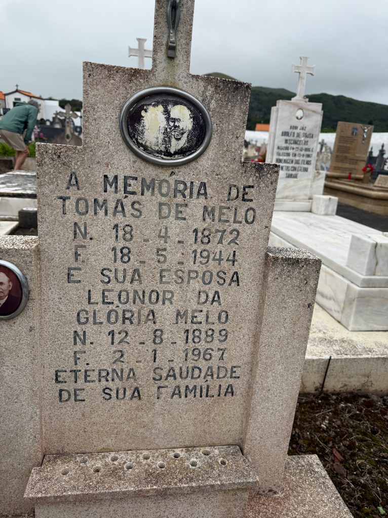 Victor has arranged for us to meet another cousin. Leonora de Melo, a granddaughter of another of my great-grandfather’s brothers. It was a wonderful visit. She shared many photos and stories, and took us to the cemetery to look at the family graves that were still there, including Victor’s grandfather and my great-grand uncle, Thomas de Melo.
