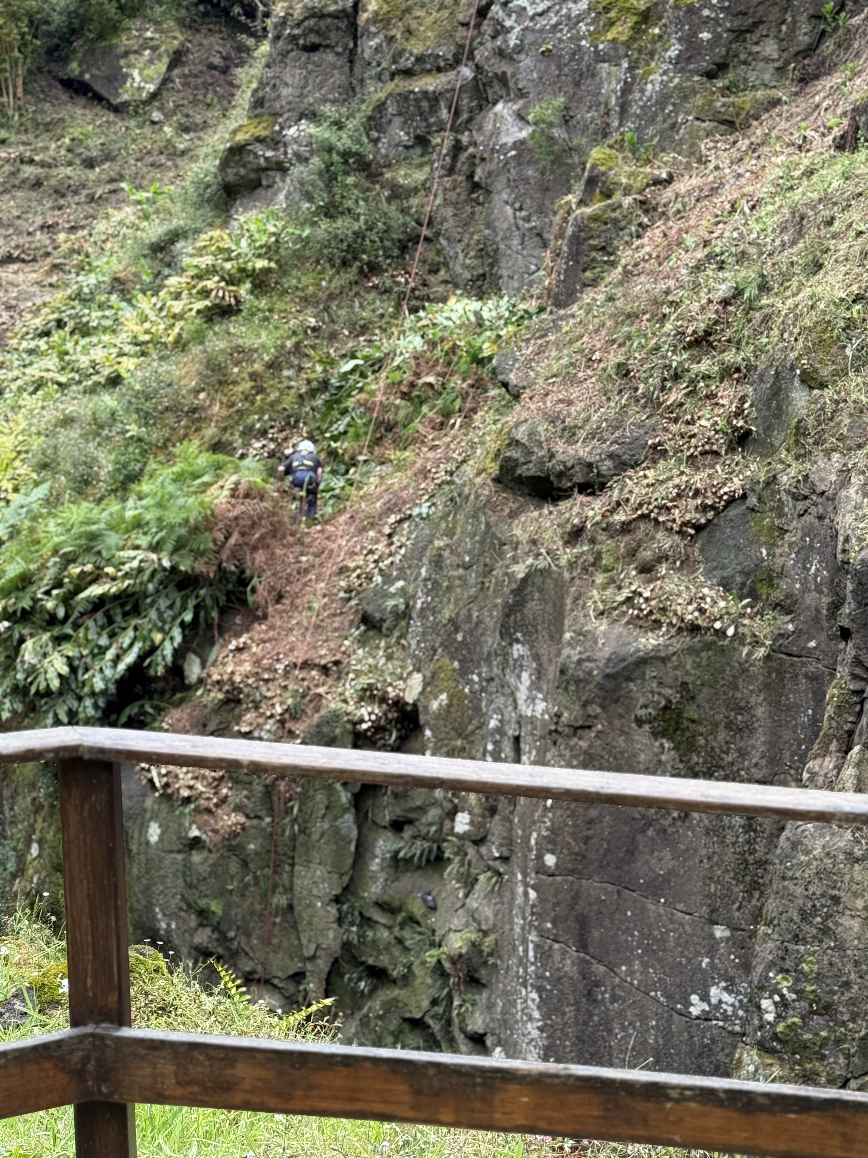 It’s a winding staircase down. Carol backs out as soon as she looks over the edge of the stairwell wall… it’s a loooooong way down and she doesn’t do heights. There are men clinging to the side of the crater trimming trees and letting the branches fall…it takes a minute to hear the crash. Me and Don continue the decent, trying to count the stairs as we climb down. It’s dizzying going around and around… think Repunzel’s tower. We finally reach the bottom and there is a huge lake at the bottom, beneath the rock overhang. We have to keep to a narrow walkway for safety because it’s very slippery. You can feel the heat, and there is a faint smell of sulphur, although it’s not over powering. We walk to the end of the walkway and I notice bubbling mud… what is this mess? I thought this was an inactive volcano.