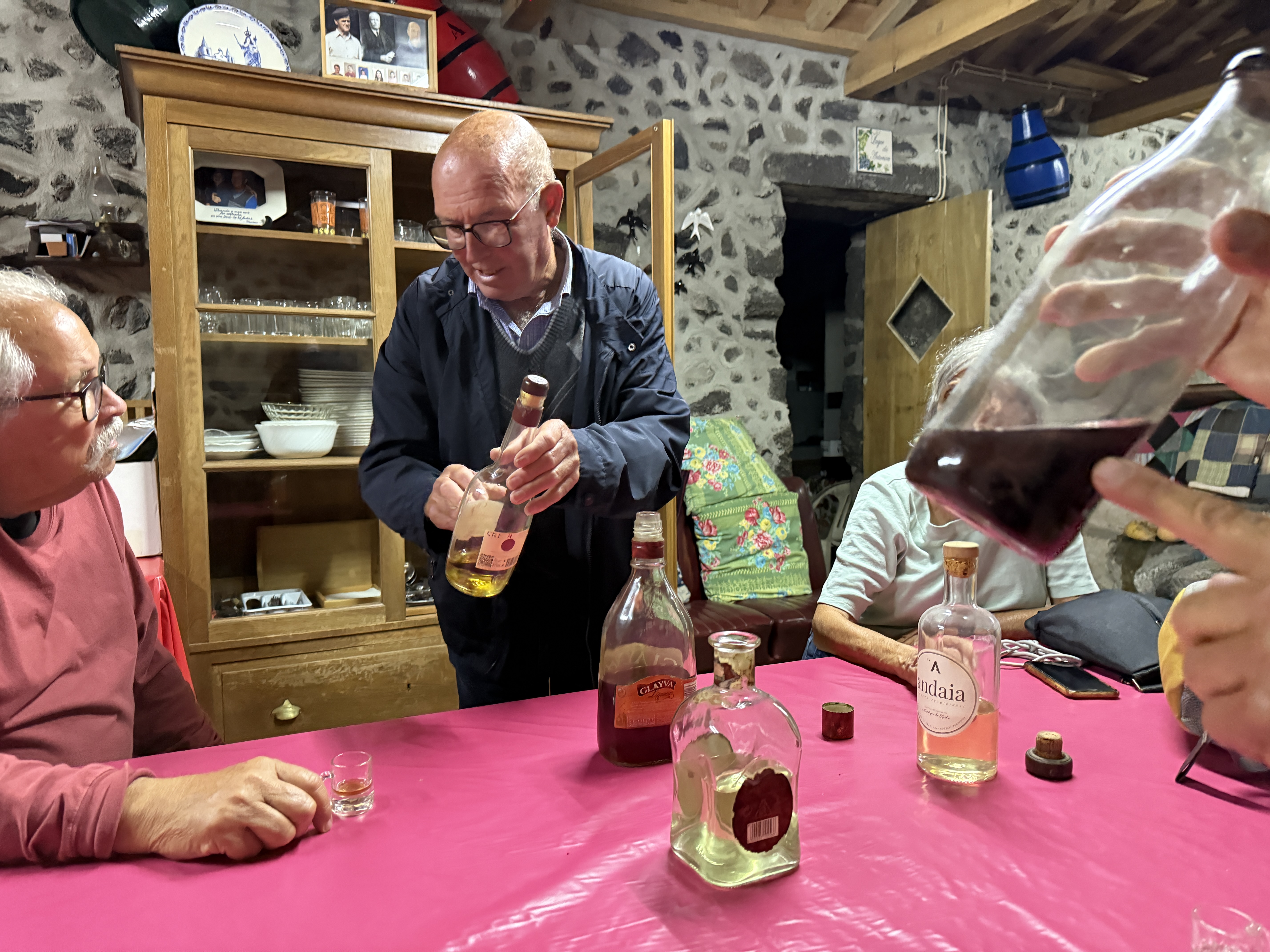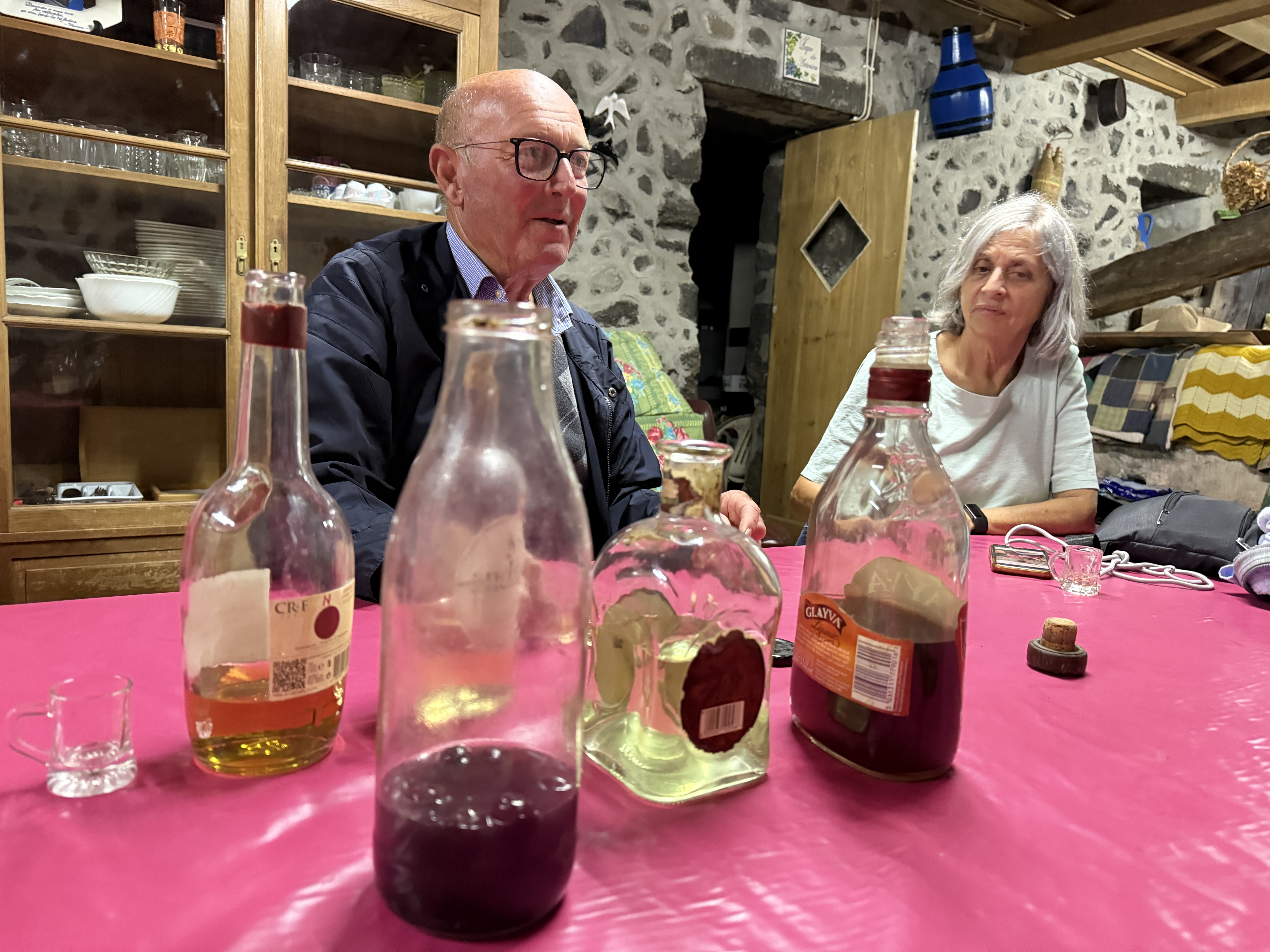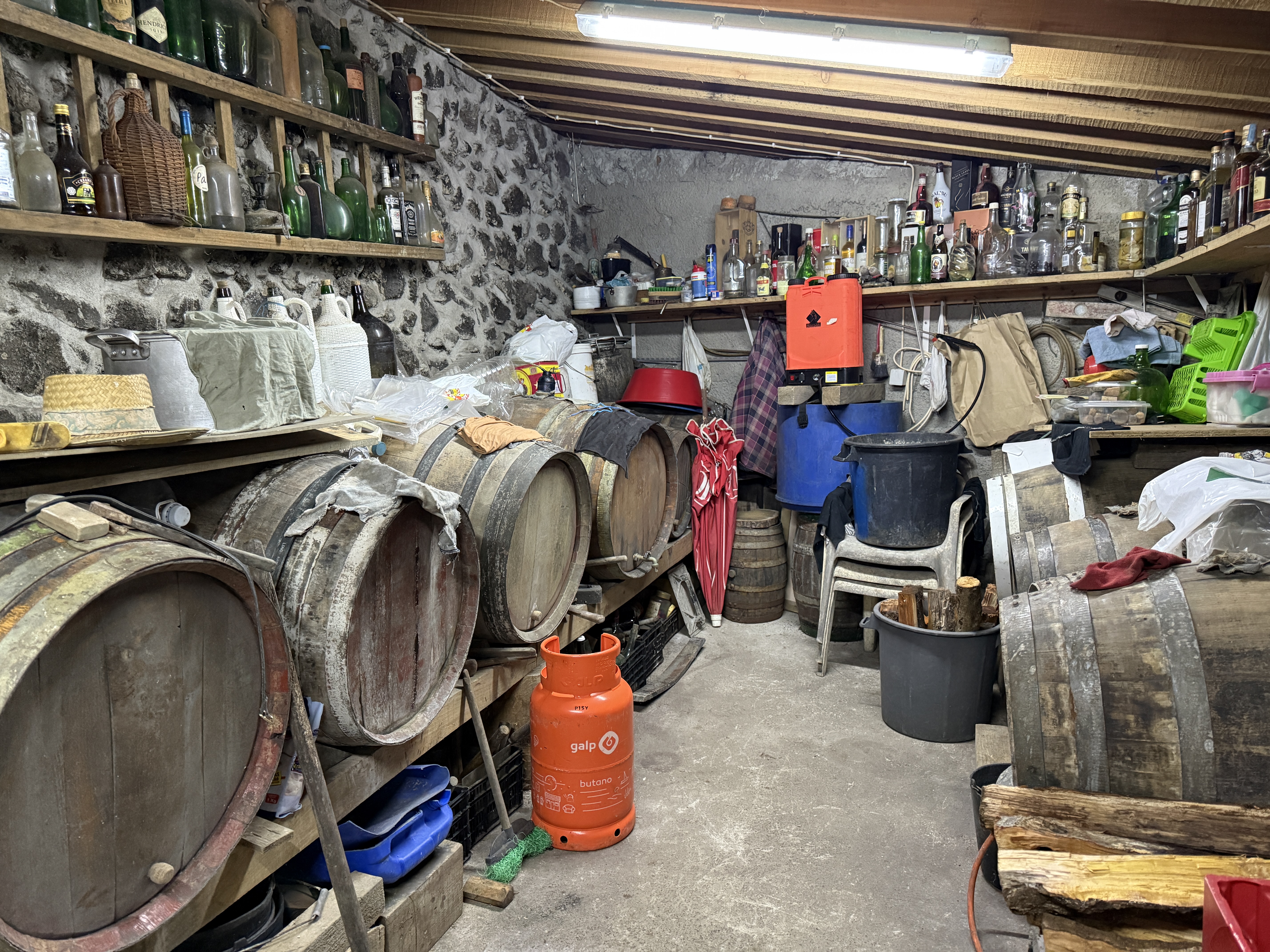 After the evening was wrapping up, we were invited by Antonio, a cousin of Tommy’s wife, to come back to his adega – his wine making cellar – to see his 200-year-old wine press and to sample some of the different alcohols he makes. What a great way to end the evening with friends!