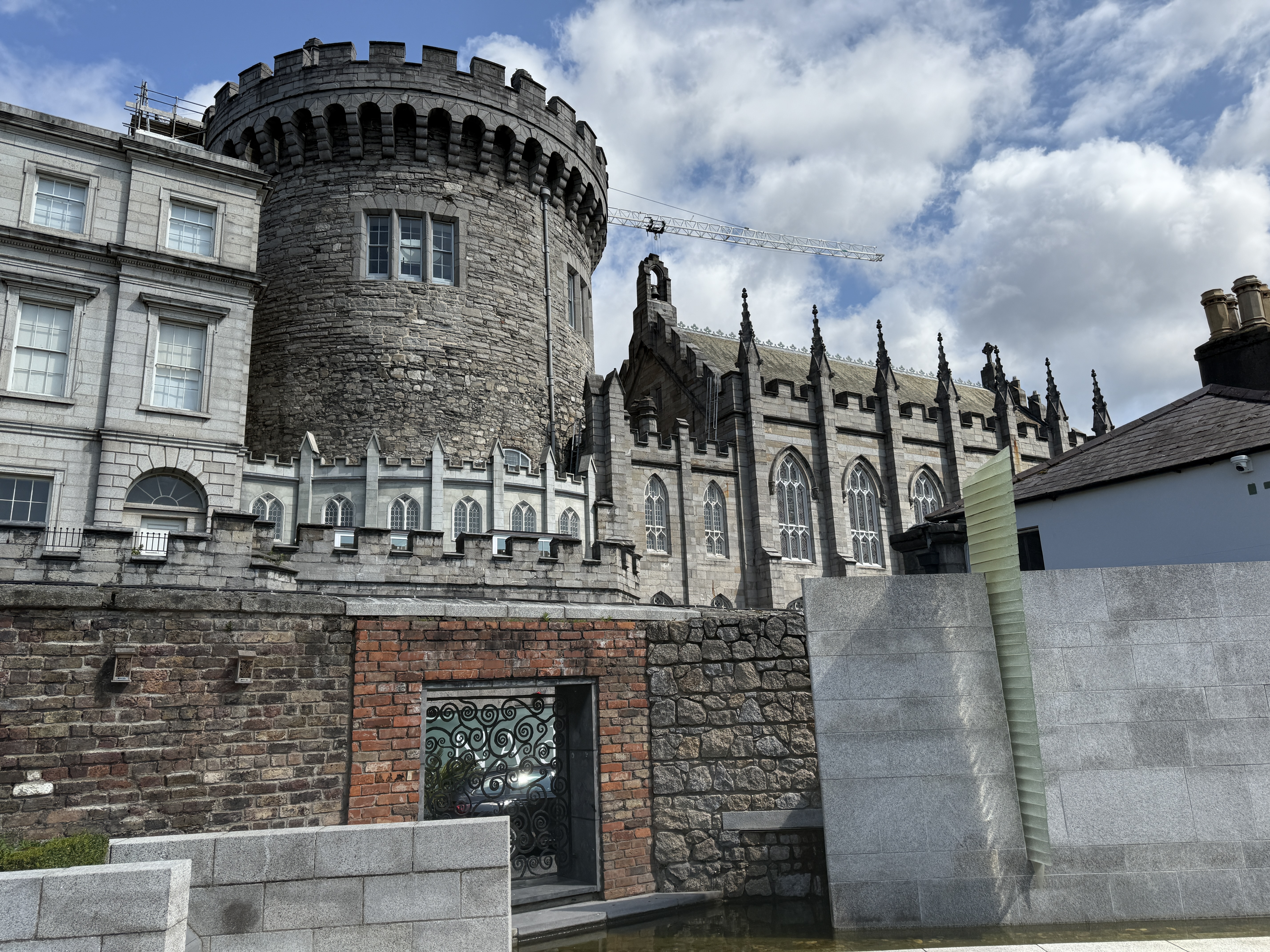 This was the fam’s first visit to Dublin and I remembered that Dublin Castle was close by from my last visit, so we went off in search of it. Carol said they had passed it but didn’t realize what it was. It’s huge, but only two of its four towers are still standing, but nonetheless, it’s still an impressive site. Its circular garden is very beautiful as well, and lots of visitors were enjoying it.